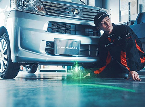 自動車整備士を目指したのは、中学生の頃、父親の車の洗車やドレスアップを見たり、手伝ったりして車に興味を持つようになったのがきっかけです。以前はディーラーに勤務していましたが、限られた種類の車だけではなく、様々なメーカーや外車の整備もしてみたいと思い、オートバックスに入社しました。