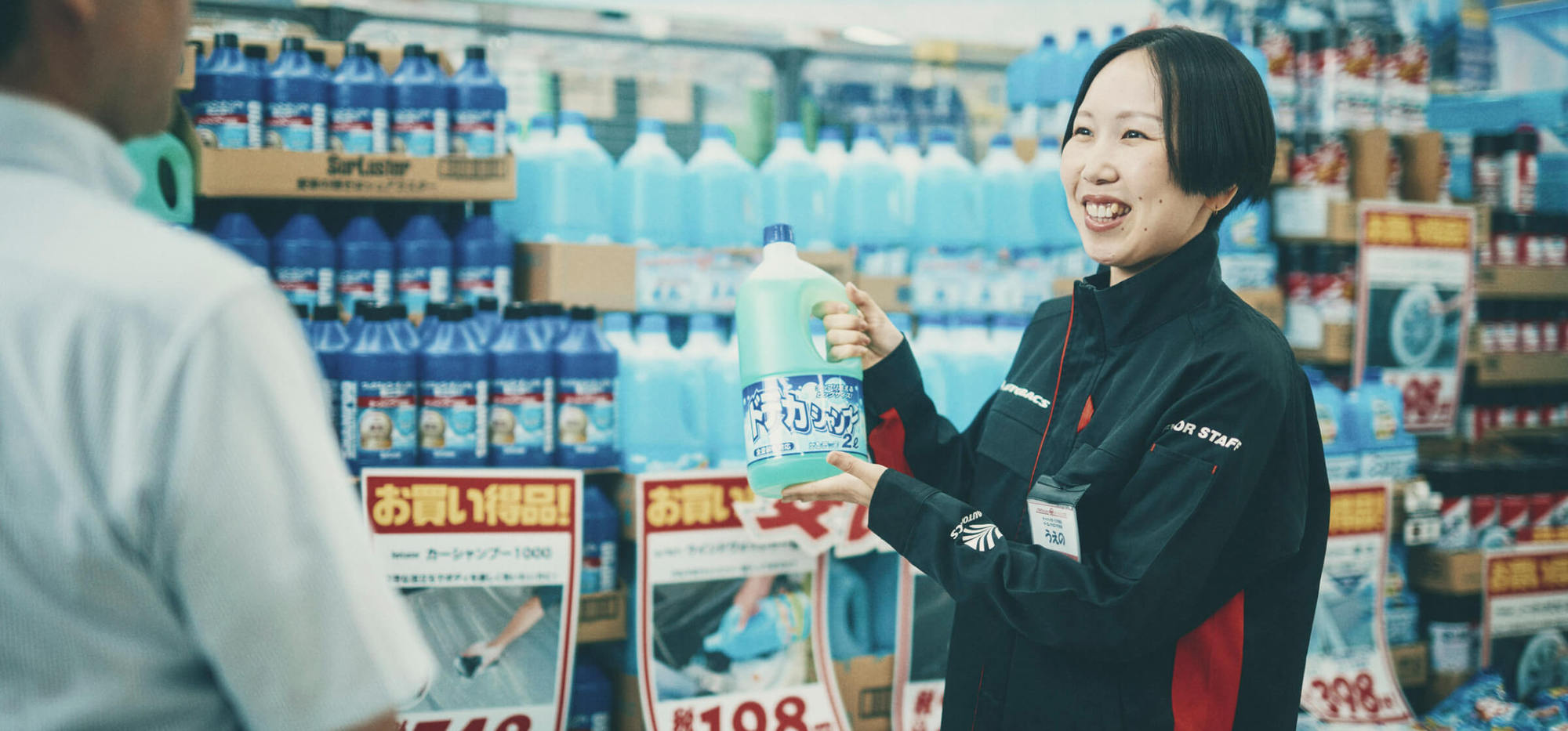 車が大好きで、以前は同業他社でアルバイトをしていましたが、転居に伴い退職しました。転居先の近くにオートバックスの新店舗がオープンすることを知り、業界大手で知名度も高いオートバックスで働きたいと思い、自ら問い合わせてアルバイトとして採用されました。現在は正社員として4年目を迎え、カーオーディオ全般の販売を担当しています。