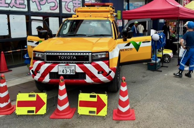 所沢警察署とNEXCO東日本と協力し開催。パトカー、ランドクルーザー新型車両とミニカーの乗車体験、反射神経ゲームを実施しました。