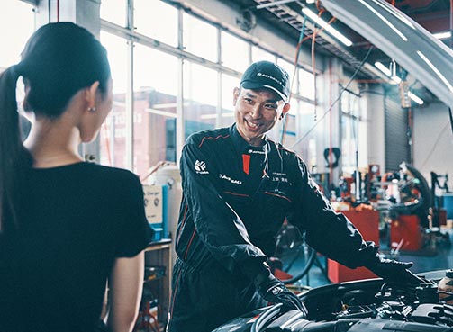 例えばマフラー交換をしたとします。作業終了後、私は車をリフトで上げた状態でお客様をお呼びします。作業した個所を見てもらいながら「ここを交換させもらいました」と、作業の説明をすると、「下回りなんて見たことなかった」とか、「写真撮ってもいいですか」言ってくださるんです。そして車を下ろし、お返しできるような状態にして「ではエンジンをかけますね、後ろで音を聞いていてください」とエンジンをかける音を聞いてもらいます。自分の車のエンジンをかける瞬間を見るというのはものすごく単純なのですがあまりないと思うんですよね。すると「おおー」と言って感動してくださいます。工賃をもらって正確に作業をするのは当たり前だし誰でもやることだと思います。その上で最後にちょっと得したなと思ってもらえるように工夫をし、お客様に気持ちよく帰っていただくことが私のプロフェッショナルとしてのこだわりです。