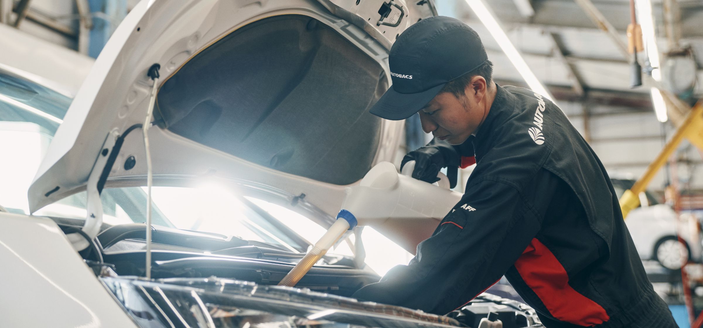 子どもの頃から父の影響で車が好きで、高校を卒業するころには「整備の仕事に就きたい」と考えていました。カーディーラー(販売店)も検討しましたが、父の知人から「オートバックスは、さまざまな車を扱える」と聞き、特定のメーカーにしばられず幅広く経験を積めることに魅力を感じました。また、僕は車だけでなく人と話すことも好きなので、お客さまのニーズに合わせて提案できることも、この会社を選んだ大きな理由です。