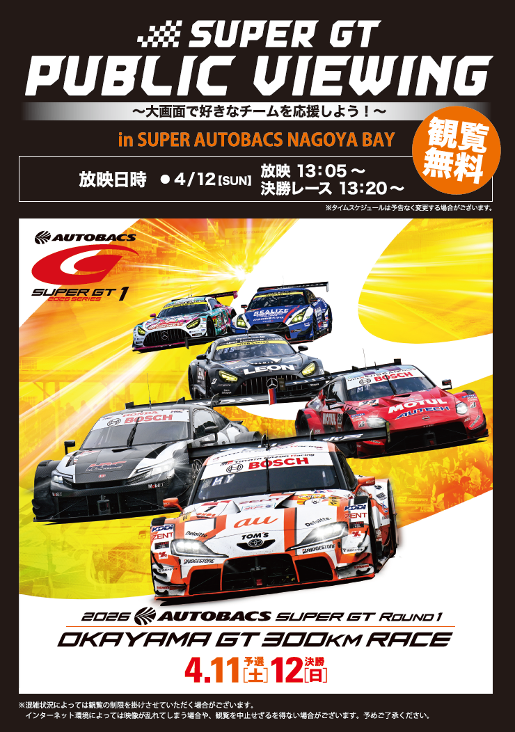 中止の場合は、オートバックスドットコム・各店舗HPを通じて前日までにご案内いたしますので随時ご確認ください。やむを得ない事由で急な変更があることについてご理解のほどお願いいたします。